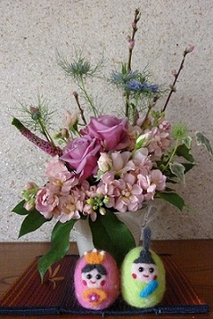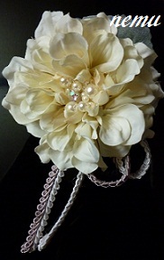 次に、ダリアをばらして、芯に通して、ダリアをもどしていく。