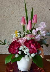 作ったダリア&リボンをぎゅっと押してしばらくまつと、
