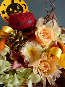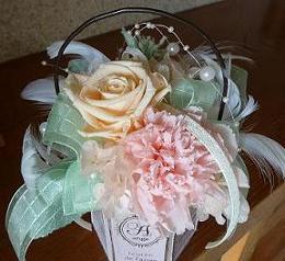 花に針金、テープを使って、花をオアシスに刺せるように作ります。